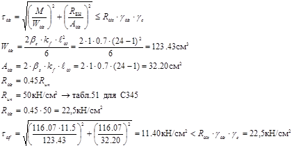 Расчет по металлу шва – определяющий.