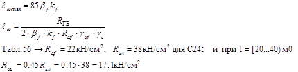 kf=6мм при t=20мм Табл. 38 [6]