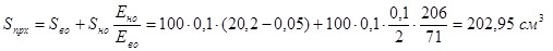 Площадь, приведенная к материалу верхней обшивки