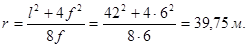 При известной величине пролета l=42 м. и принятой стреле подъема f=6 м. радиус кривизны rарки кругового очертания определяется по формуле