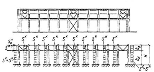 δkk - перемещение отдельной колонны (или рамы) на уровне ее верха от действия горизонтальной единичной силы, приложенной в том же уровне.