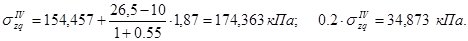 Ширина фундамента bусл=2м., глубина заложения d=7,4 м., среднее давление под подошвой P= 297,629кПа, η=1 (рис. 7).