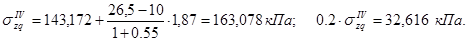 Ширина фундамента bусл=2м., длинна фундамента lусл=4м., глубина заложения d=7,4 м., среднее давление под подошвой P= 297,629кПа, η=2, принимаем η=2,4 (рис. 7).