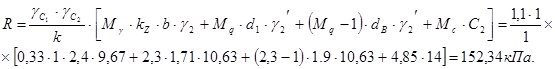 - расчетное значение удельного сцепления грунта, залегающего непосредственно под подошвой фундамента.