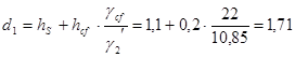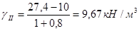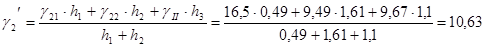- осредненное расчетное значение удельного веса грунтов, залегающих выше отметки заложения подошвы фундамента (при наличии подземных вод ) определяется с учетом взвешивающего действия воды), кН/м3.
