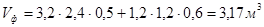Проверяем фактическое среднее давление под подошвой фундамента. Общий объем фундамента, грунта на его уступах и пола подвала:
