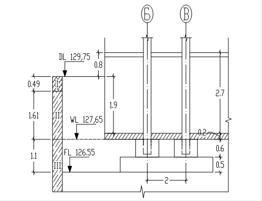 . Отметка пола подвала – 2.7м. Глубина заложения подошвы фундамента