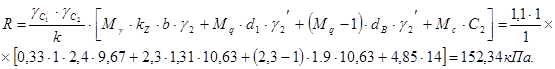 - расчетное значение удельного сцепления грунта, залегающего непосредственно под подошвой фундамента.