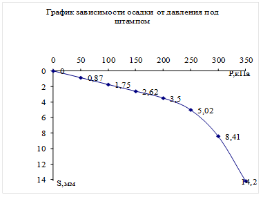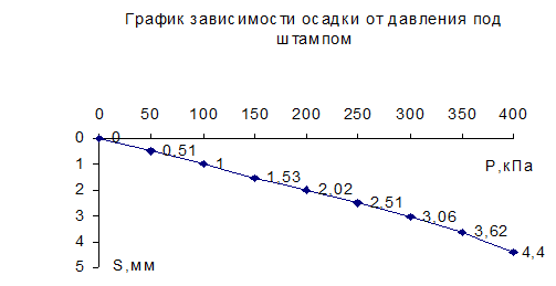 По результатам штамповых испытаний строим график зависимости осадки от давления под штампом.