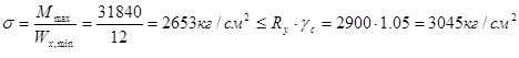 Где 12 – количество стенок гофров на условной ширине листа равной 1м. Проверяем прочность сечения: