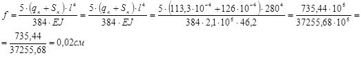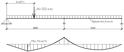 Постоянная + временная от сосредоточенного груза, равного N=100×γf =100×1,2=120 кгс. Расчет по этой схеме производим только на прочность.