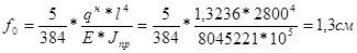 f = 3,2см < l/300 = 2800/300=9,3 см – условие выполняется