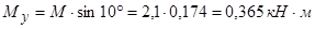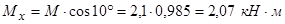 Прогон работает в условиях косого изгиба. Составляющие момента относительно главных осей сечения: