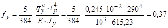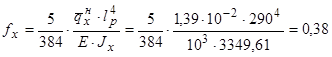 Необходимо проверить прогиб прогона от действия нормативной нагрузки. Находим составляющие прогиба относительно главных осей: