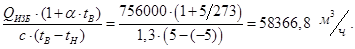 — температурный коэффициент, равный 1/273°; с=1,3 кДж/(м3-°С)— теплоемкость 1 мЗ воздуха.