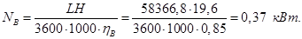 где NВ – мощность, потребляемая вентилятором; L – подача вентилятора м3/ч; Н–полное давление вентилятора,19,6 Па;