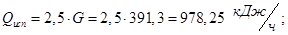 где G – количество тепла испаряемого в помещении грамм/час; (табл. 2 Приложения)- количество водяных паров на одну голову на количество животных; 2,5 – скрытая теплота испарения 1грамм воды кДж/ч.