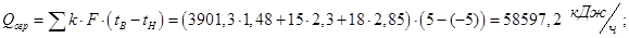 где F – поверхность ограждения м2; k –коэффициент теплопередачи окон, потолка, стен и прочих поверхностей (табл. №6) кДж/ м3