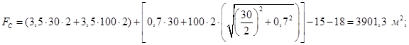 где В – высота стен, м; А – ширина помещения, м; L – длинна помещения, м; h – высота от верха стены до конька помещения, м; FД – площадь дверей, м2;