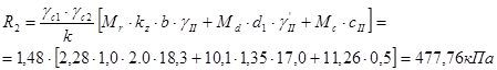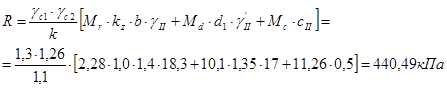 Расчётное сопротивление для принятой ширины подошвы фундамента составит: