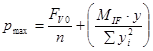 выполняется проверка несущей способности наиболее загруженной сваи в направлении действия момента. Максимальное усилие, передаваемое на сваи, определяется по формуле: