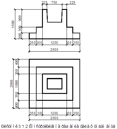 Зазор между колонной и стаканом 75 мм. Т.к. размеры колонны в плане 0.6х0.4 м, то размеры подколонника в плане ℓcf = 600+2*225+ 2*75= 1200 мм