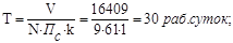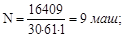 V = 16409 м3, k = 1 смена, Пс = 61 м3 / смену;
