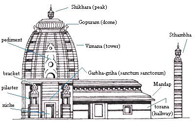 Пагода в форме башни со слегка выгнутыми ребрами наиболее распространена в провинции Орисса, область О.
