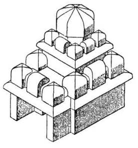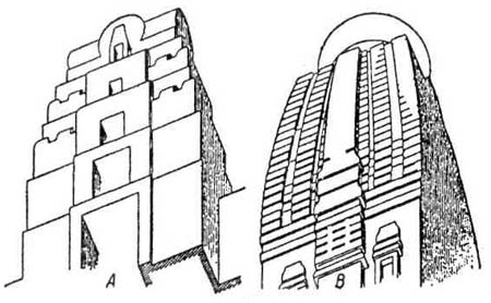 В этих комплексах, где одно здание нагромождается на другое, напрасно было бы искать изысканности египетских храмов, но по выразительности масс и по силе воздействия они могут быть сравнены лишь с памятниками египетской архитектуры. К этому прибавляется еще обилие и нагромождение пластических украшений, символизирующих впечатление подавляющего величия.