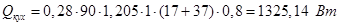 Расход теплоты на нагрев инфильтрующегося воздуха, связанного с работой систем вентиляции, Qв |