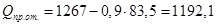2) теплопотери помещения выпишем из таблицы 5, Q1=1267 Вт;