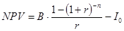 Стоимость лампы составляет 308,75 руб. Их количество 10 штук. Тогда инвестиции составят I0 = 308,75·10 = 3087,5 руб. Экономия электроэнергии в год составит S = (100-20) ·365·8·10 = 2336 кВт. Стоимость кВт·ч равна 1,2 руб.