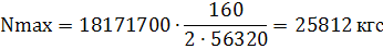 Продольная сила, возникающая в сечении максимально нагруженной колонны