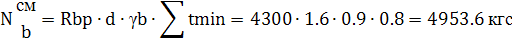 Расчетное усилие по смятию, воспринимаемое одним болтом: