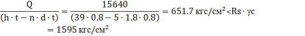 Условие выполняется, то есть несущая способность одного болта больше того усилия, которое необходимо воспринять болту крайнего ряда (максимальное усилие, возникающее в монтажном стыке стенки).