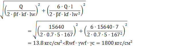 Расчет проводим по металлу шва. Прочность сварных швов проверим по формуле