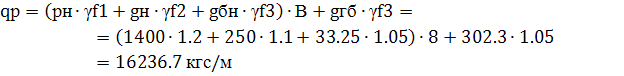 Rгб=qр∙L=16236.7∙18=292260.6 кгс.