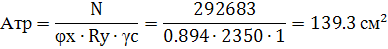 Для колонны применяем сталь С235 с Ry=2350 кгс/см2 при толщине фасонного проката до 20 мм. Задаемся гибкостью колонны λ=40 (N˃200000 кгс), коэффициент продольного изгиба φ=0.894. Требуемую площадь сечения колонны определяем по формуле