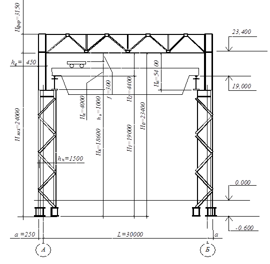 Рис.1.1. Схема каркаса поперечной рамы здания
