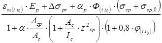 - ожидаемое значение усадки бетона к моменту времени «t», определя-емое по указаниям СНБ 5.03.01-02.