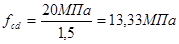 Бетон тяжелый класса С20/25, расчетное сопротивление сжатию которого
