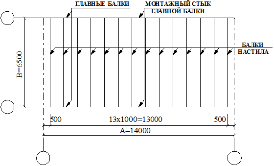 Схема компоновки второго варианта показана на рисунке 3. Схема сопряжения балок может быть принята по рисунку 1в.