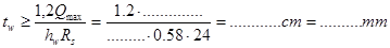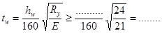 Находим толщину стенки пологая, что tf=2 cм, hw=h‑2 tf= -2·2= см