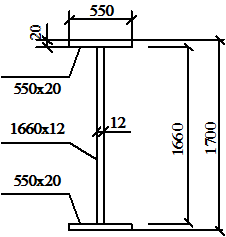 Принимаем пояса из листа 550×20 мм. При этом