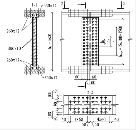 Стык поясов перекрываем накладками из стали С245 сечением 550×12 с наружной и 2×260×12 с внутренней стороны поясов. При этом суммарная площадь сечения накладок