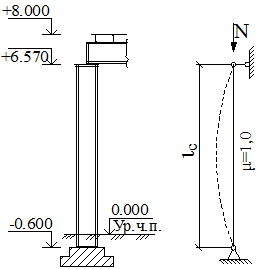 Геометрическая длина колонны равна отметке верха настила (из задания) за вычетом толщины настила tн, высоты балки настила и главной балки hг.б., с учетом выступающей части опорного ребра 2 см, заглубления колонны ниже отметки чистого пола на 0,6 м. с учетом μ=1 составляет