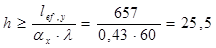 Проектируя колонну с гибкостью, равной примерно l=60, найдём наименьшие размеры h и bf