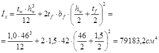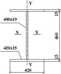 пояса – 2 листа 420×15 мм, площадью 2Af=2×42×1,5=126,0 см2