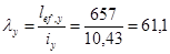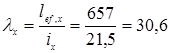 Гибкость колонны в обоих направлениях будет соответственно равна: