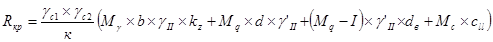 CII - расчетное значение удельного сцепления грунта, залегающего непосредственно под подошвой фундамента;